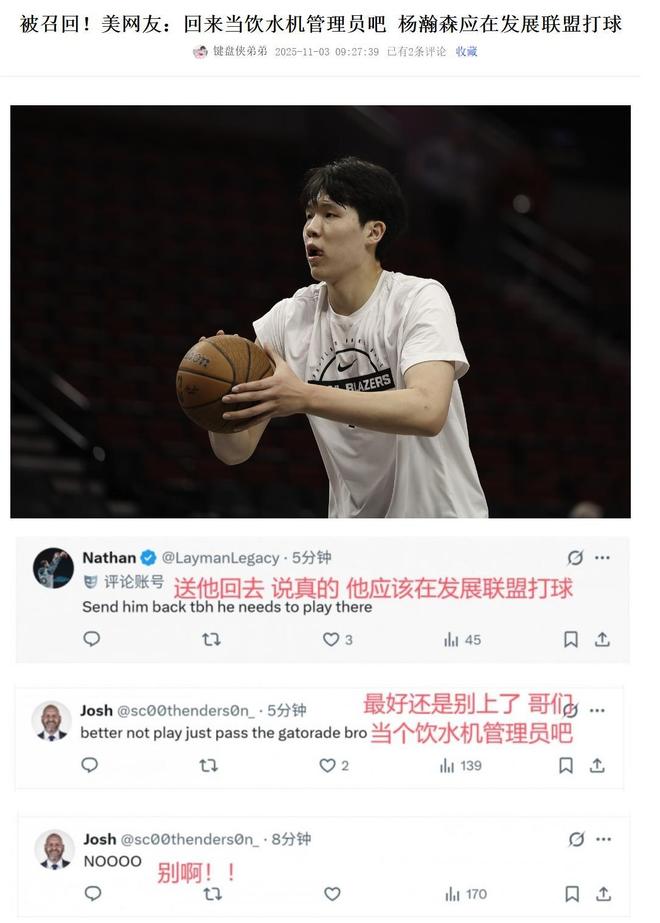 有美国网友在社交媒体直言:“不如让他继续留在发展联盟好好打磨技术,别总想着回主队凑热闹。”还有人讽刺道:“就算回来了,估计也只能坐在替补席递毛巾、看饮水机,根本帮不上忙。”