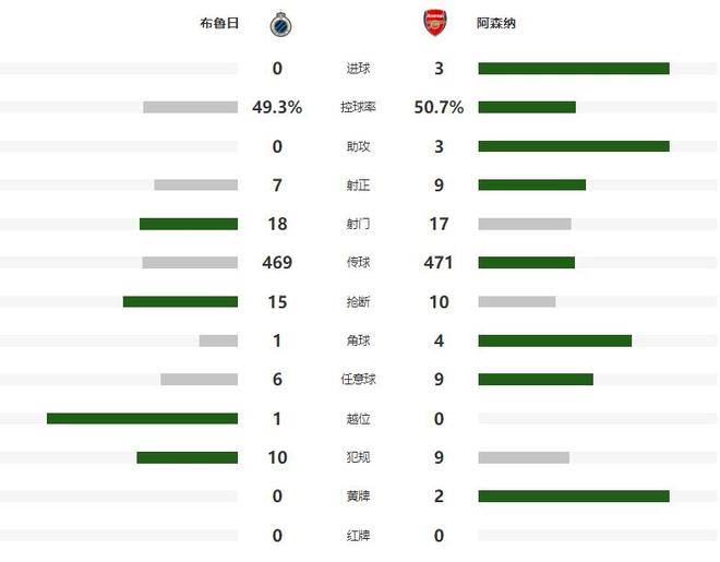 第79分钟阿森纳本有机会进一步改写比分,但热苏斯的兜射被横梁拒绝,余下的时间,阿森纳开始掌控节奏,成功在客场零封布鲁日,取得了一场大捷。